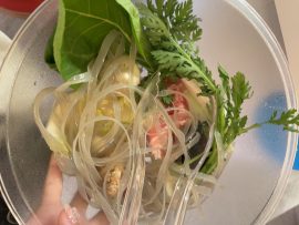 具材と春雨が同じボウルに入っているので見づらいですが、野菜やお肉、エビなどをとりました!