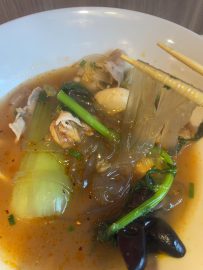 スープは澄んだ薬膳系です。他店でも1~2辛を注文する私ですが、辛さもスープの味も優しめに感じました。